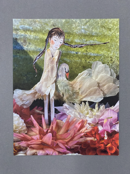 Postkarte,,Das Schwanenmädchen im Dahlienblütensee"