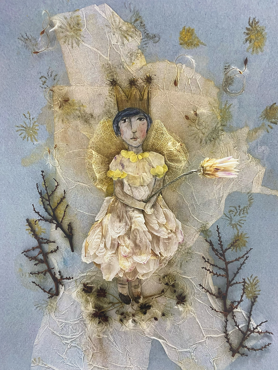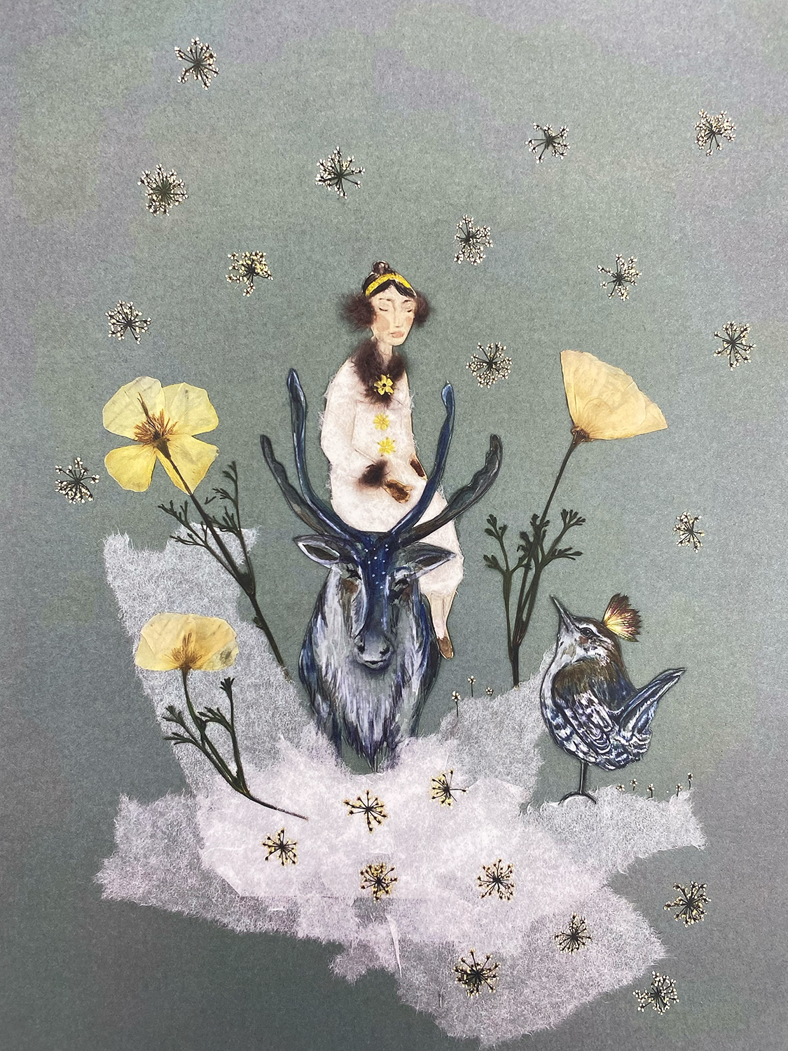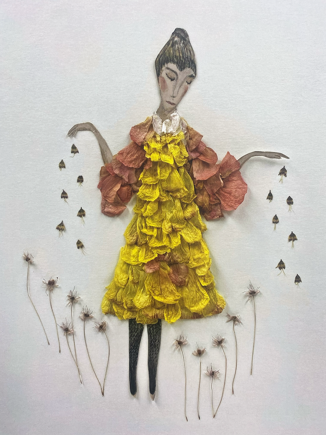 Der Kunstkalender umfasst alle Werke die Laufe des Jahres entstanden sind.Die 12 unterschiedlichen Collagen erzählen kleine Geschichten.Farbenfroh und mit viel Liebe zum Detail wurde jedes Bild per Hand angefertigt und jahreszeitlich passend zu den jeweiligen Monat blühende Blüten und Pflanzen in gepresster Form collagiert und mit gezeichneten Elementen und Figuren gestaltet.Eine stimmungsvolle,naturnahe Begleitung, einzeln zum einrahmen.