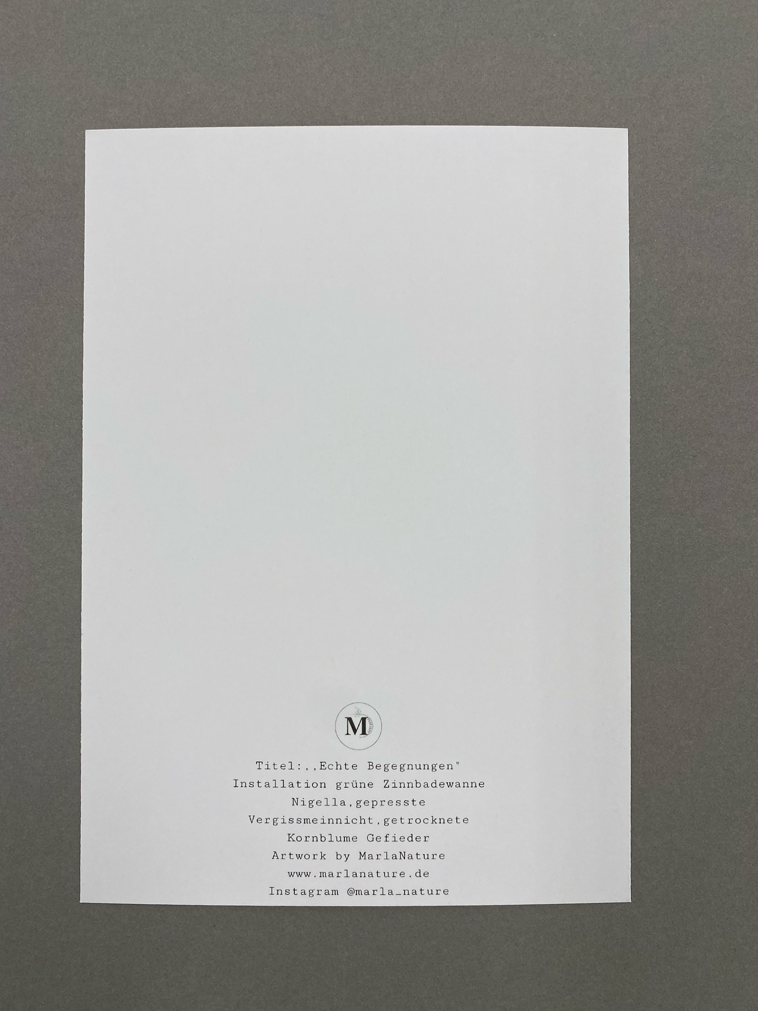 Gedruckt wurde die Illustration auf angenehmen Feinstpapier 300 g/qm creme weiß, das die feinen einzelnen Details der Blüten und Zeichnung auf einer ebenen Oberfläche für ein haptisches Erlebnis wiedergibt.
