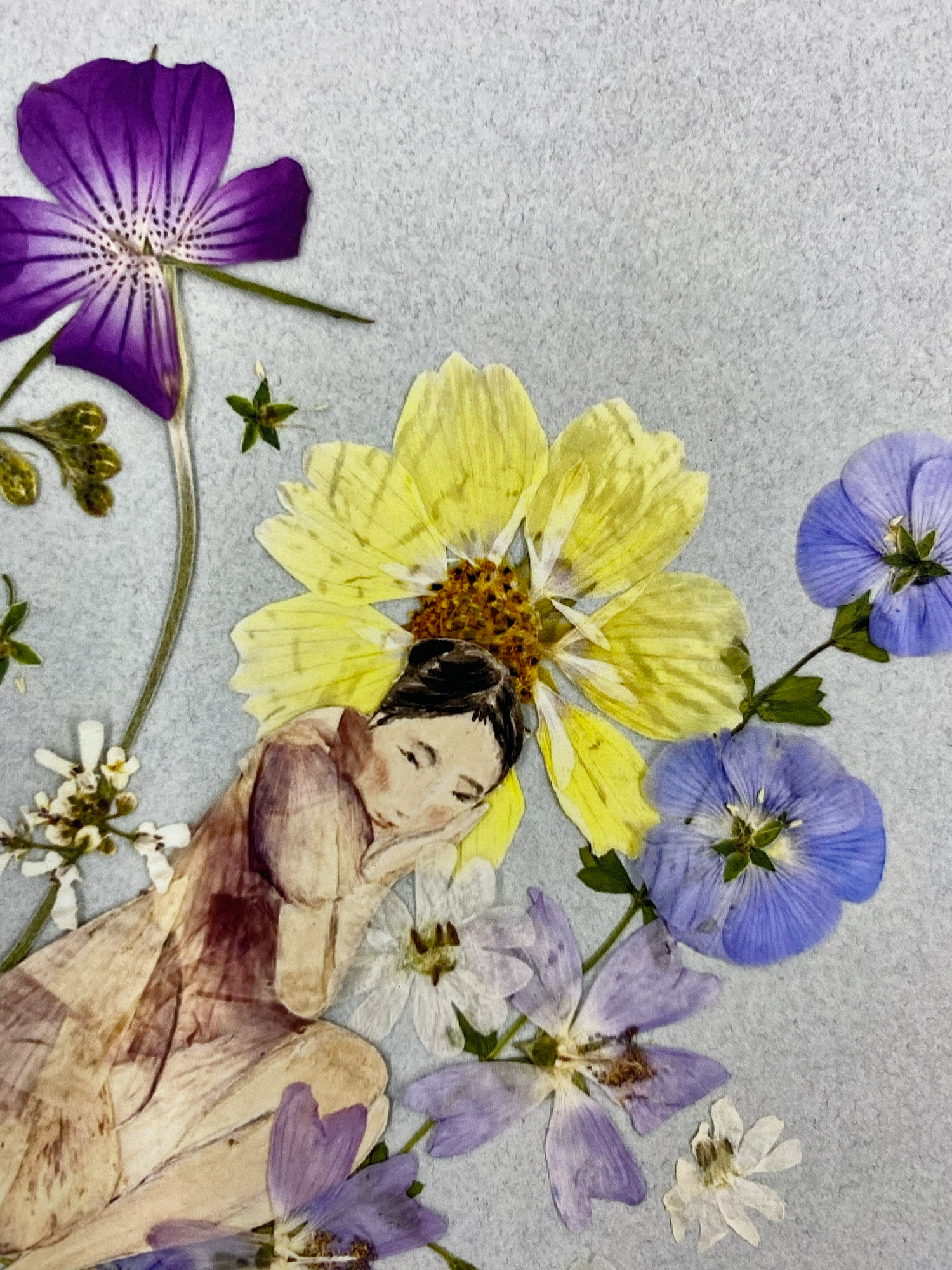 Die Collagenillustration,, Septembertraum" entstand an einem stimmungsvollen Septembertag.Die kräftigen Farben und das besondere Licht umgeben von einem wunderschöne Blütenmeer was dieser Monat mit sich bringt, hat mich zum Innehalten, Genießen und Träumen angeregt.Ich konnte einfach nicht anders als diese Illustration mit einem atemberaubenden Blüten - und Farbspektum zu gestalten.