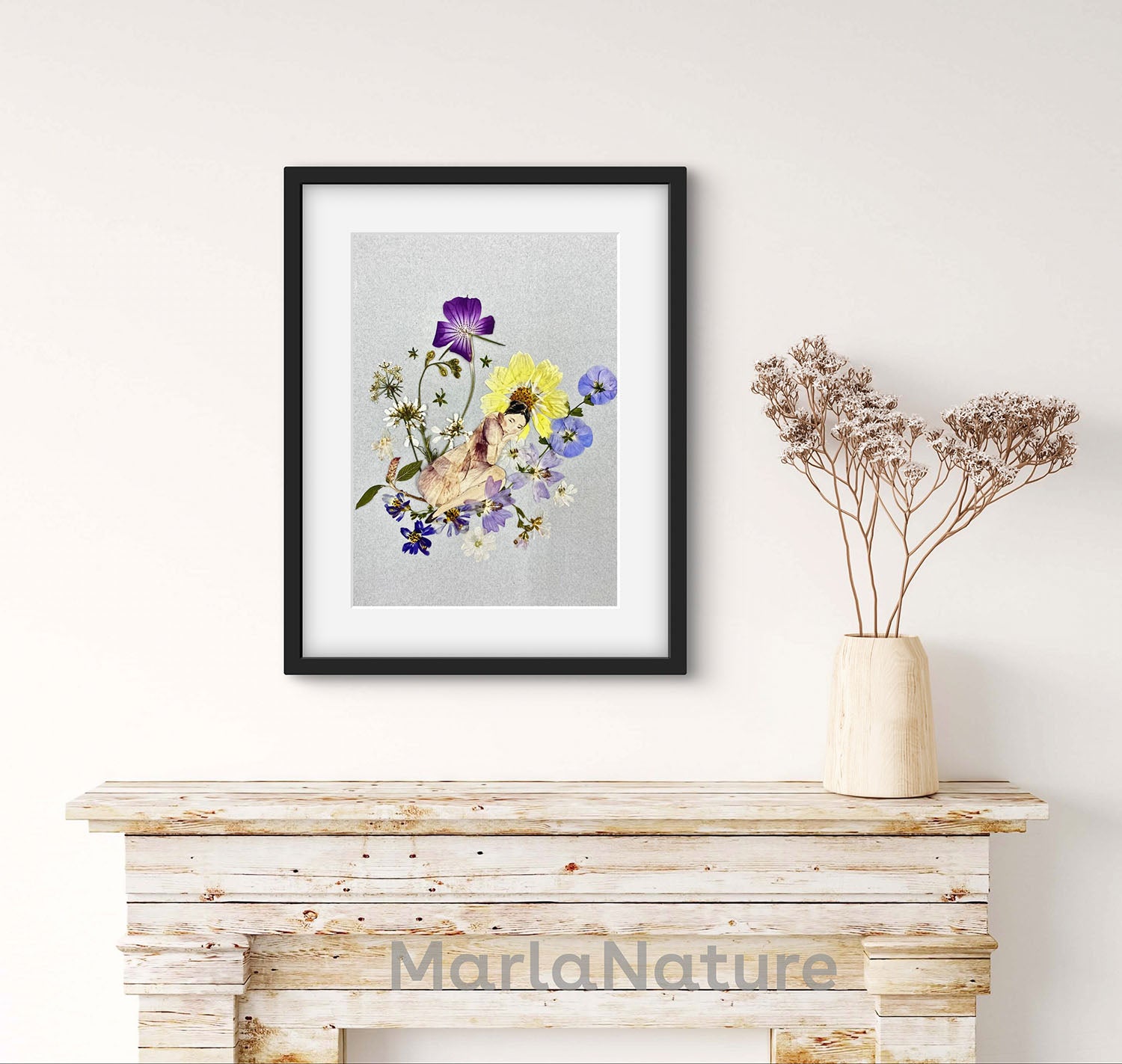 Geduckt ist die Naturillustration auf originalen Hahnemühle Fineart Papier, ein säurefreies Künstlerpapier.Die feine Haptik, die matte, samtige glatte Oberfläche gibt die feinen Details der Collage wunderbar wieder.Da es ein eher empfindliches Papier ist und kein Posterpapier empfehle ich den Druck dauerhaft einzurahmen.