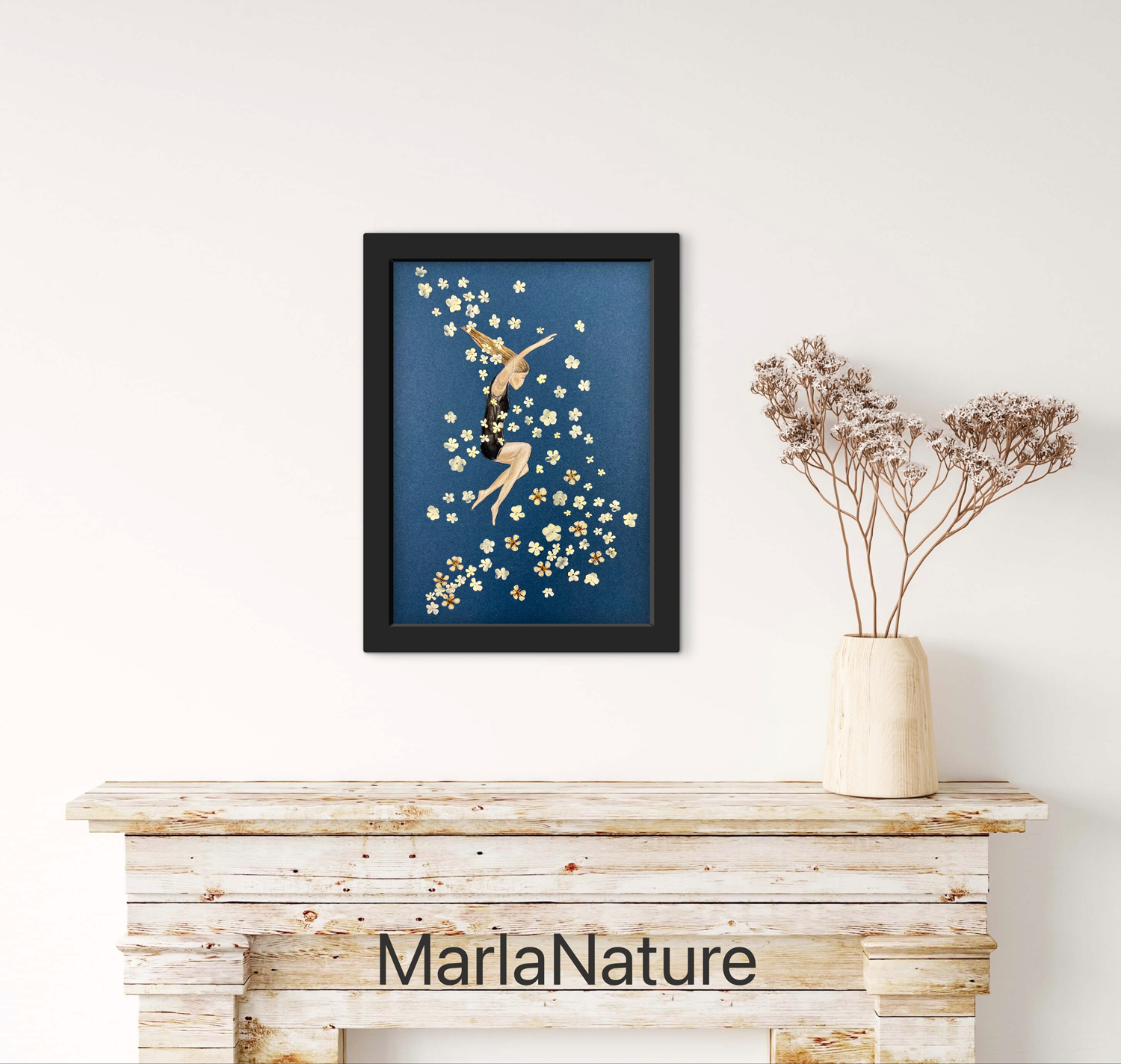 Geduckt ist die Naturillustration auf originalen Hahnemühle Fineart Papier 300g, ein säurefreies Künstlerpapier.Die feine Haptik, die matte, samtige glatte Oberfläche gibt die feinen Details der Collage wunderbar wieder.Da es ein eher empfindliches Papier ist und kein Posterpapier empfehle ich den Druck dauerhaft einzurahmen.